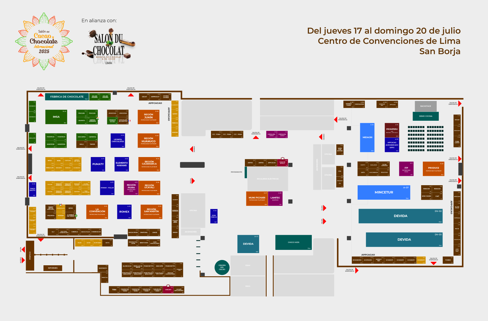 COMPRAR ENTRADAS 15 VERSIONES Ininterrumpidas STANDS + 0 VISITANTES + 0 VENTAS + 0 ACTIVIDADES EXHIBICIÓN DE LA OFERTA VII FORO LATINOAMERICANO SALA DE TECNOLOGÍA E INNOVACIÓN X CONCURSO NACIONAL DEL CHOCOLATE PERUANO XIX CONCURSO NACIONAL DEL CACAO VII CONCURSO DE ESCULTURAS VER MÁS ¡DESCARGA EL MAPA AQUÍ! LUGAR: Centro de Convencionesde Lima – Perú DESCARGAR MAPA